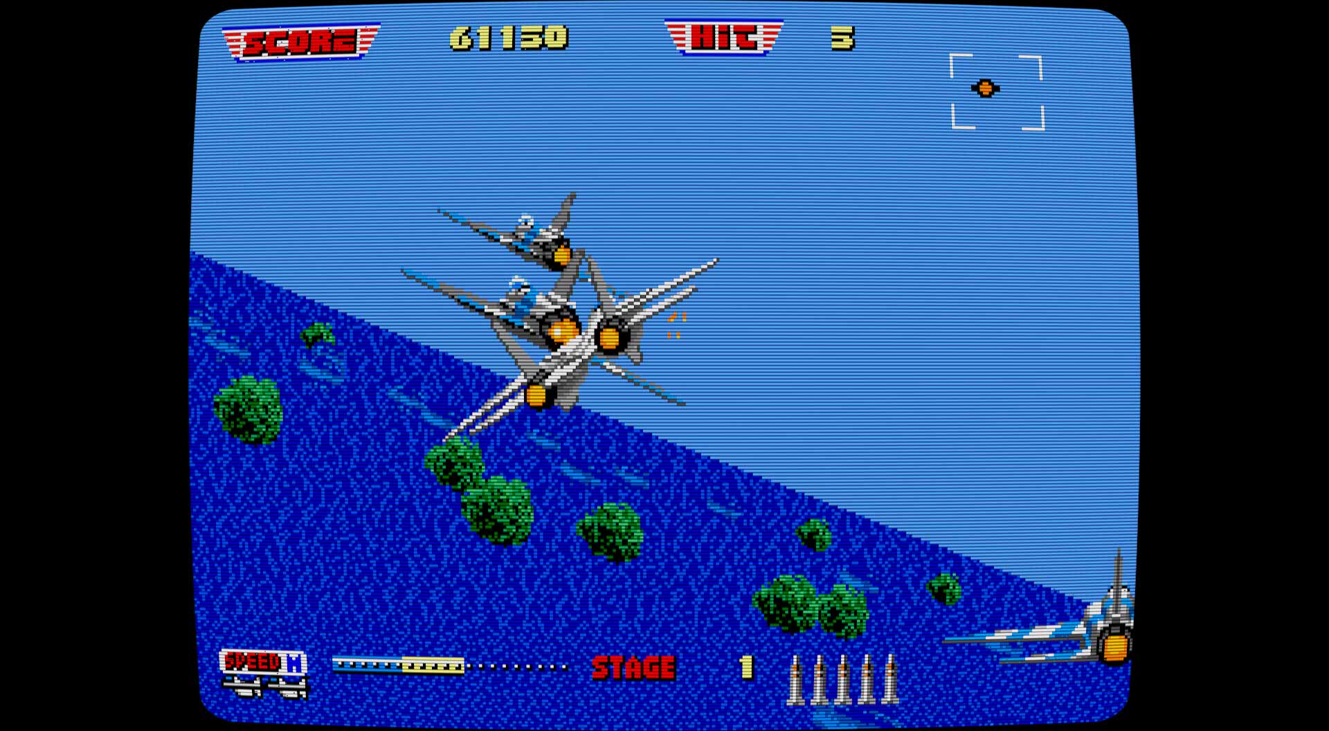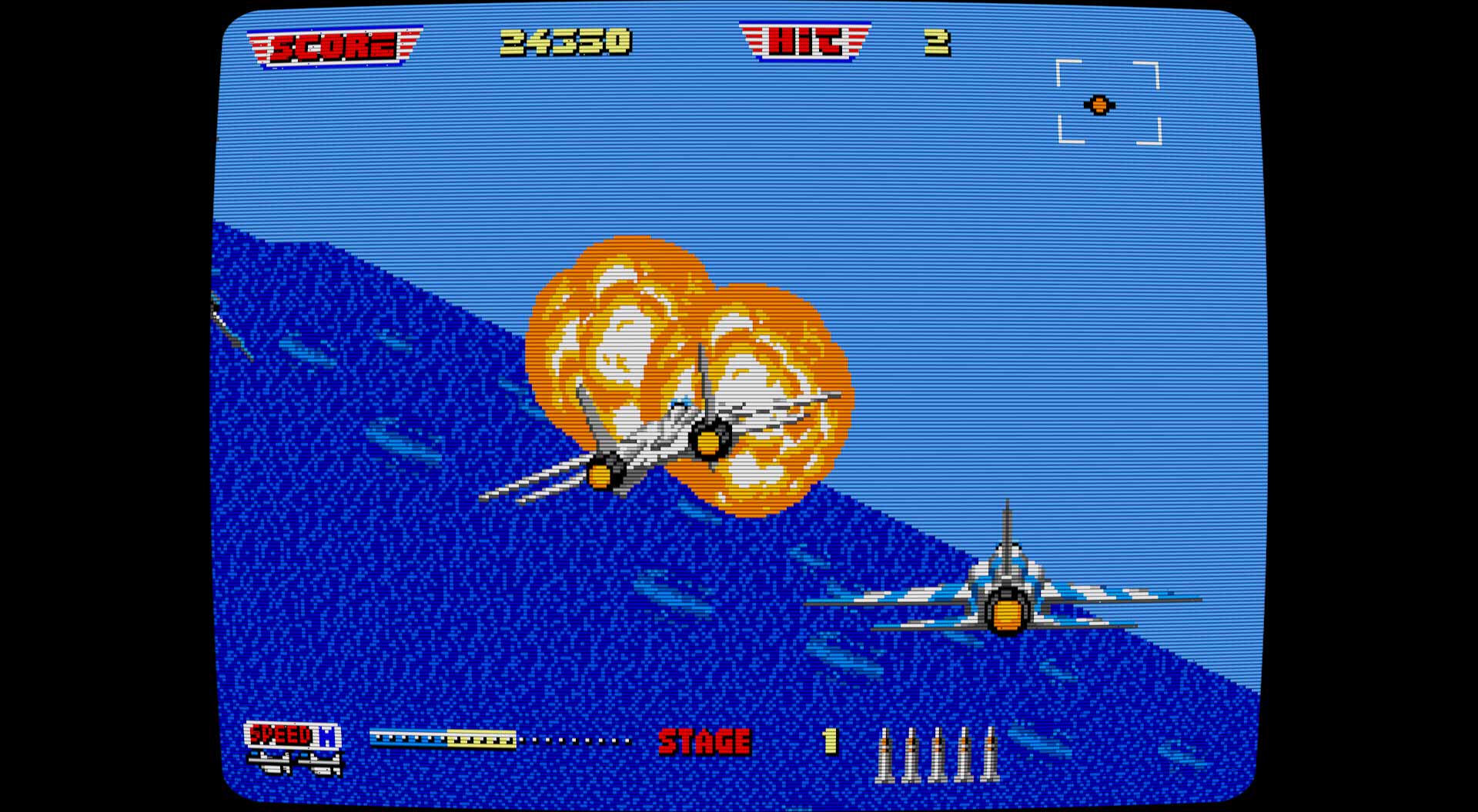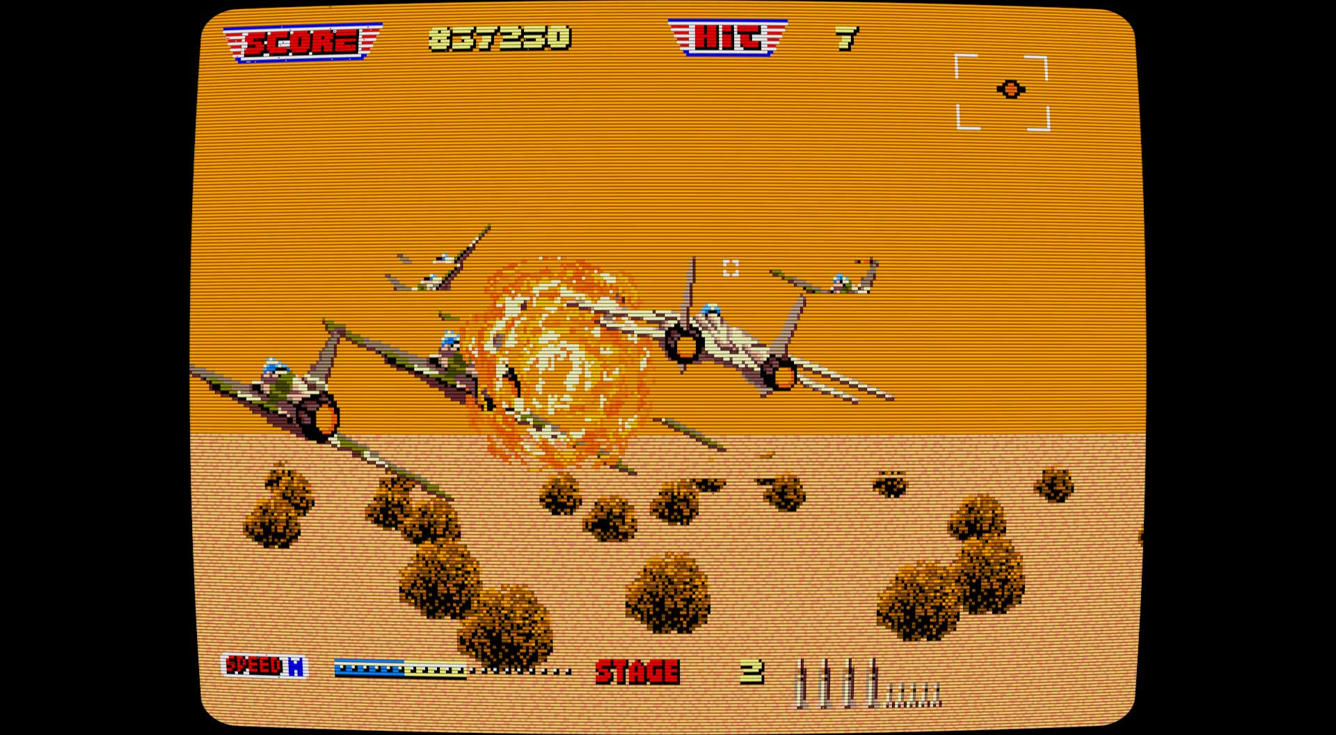 After Burner II ist ganz klar ein Kind der Arcade-Ära und das merkt man sofort. Das Spiel ist darauf ausgelegt, dich ständig unter Druck zu setzen: Gegner tauchen blitzschnell auf, Raketen kommen aus allen Richtungen, und Reaktionszeit ist ein Luxus, den man sich kaum leisten kann. Was das Ganze herausfordernd macht, ist nicht unbedingt die Gegnerintelligenz, sondern die schiere Geschwindigkeit der Abläufe und das Fehlen jeglicher Checkpoints. Verlierst du ein Leben, wirst du gnadenlos zurückgeworfen – was in den späteren Levels, wenn die Bildschirmfülle zunimmt, schnell frustrieren kann.