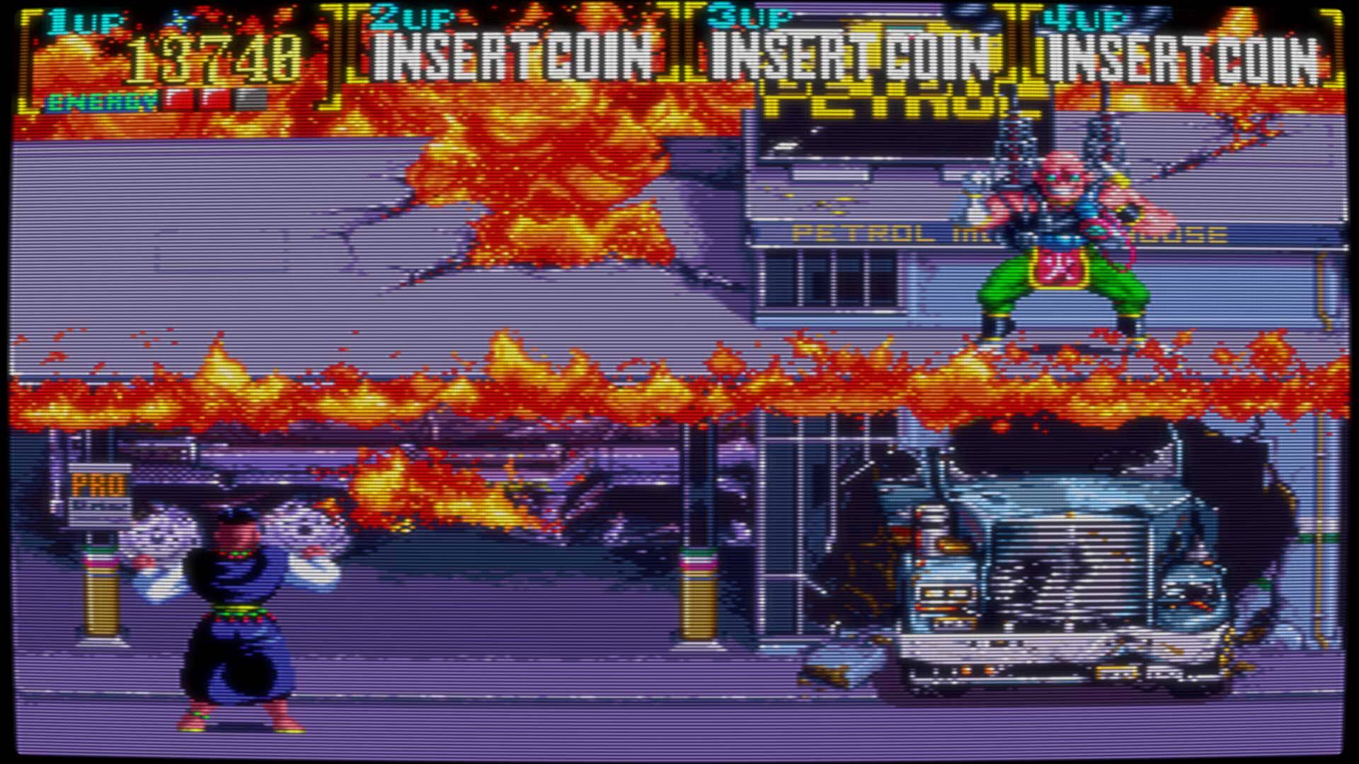 Konami war in den frühen 90ern ein Meister der Arcade-Pixelkunst, und das zeigt sich auch in Mystic Warriors. Die handgezeichneten Sprites sind detailreich und hervorragend animiert. Jedes Level hat eine einzigartige Atmosphäre, von düsteren Großstädten über frostige Berge bis hin zu brennenden Dörfern. Besonders beeindruckend sind die Lichteffekte, Explosionen und Wettereffekte, die das Spielgeschehen lebendiger machen. Feinde und Bosse sind mit viel Liebe zum Detail gestaltet und tragen zur dichten Atmosphäre bei.