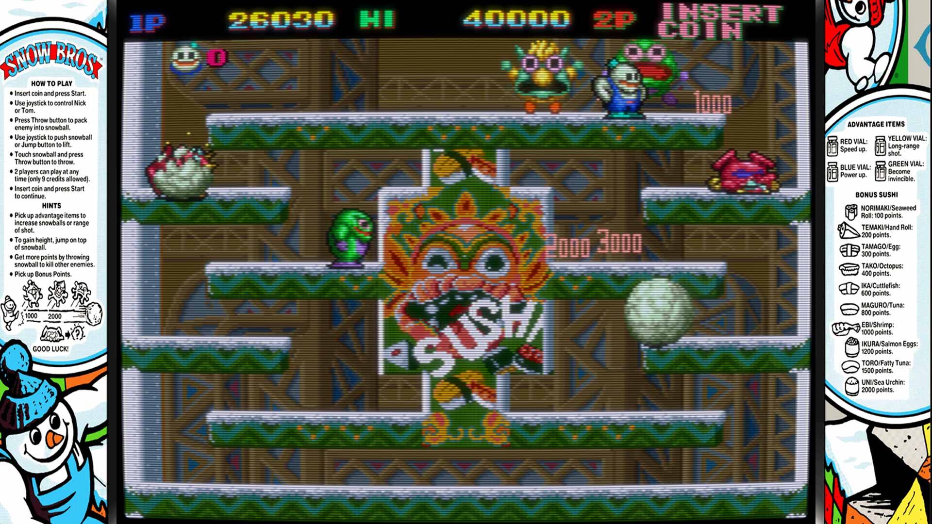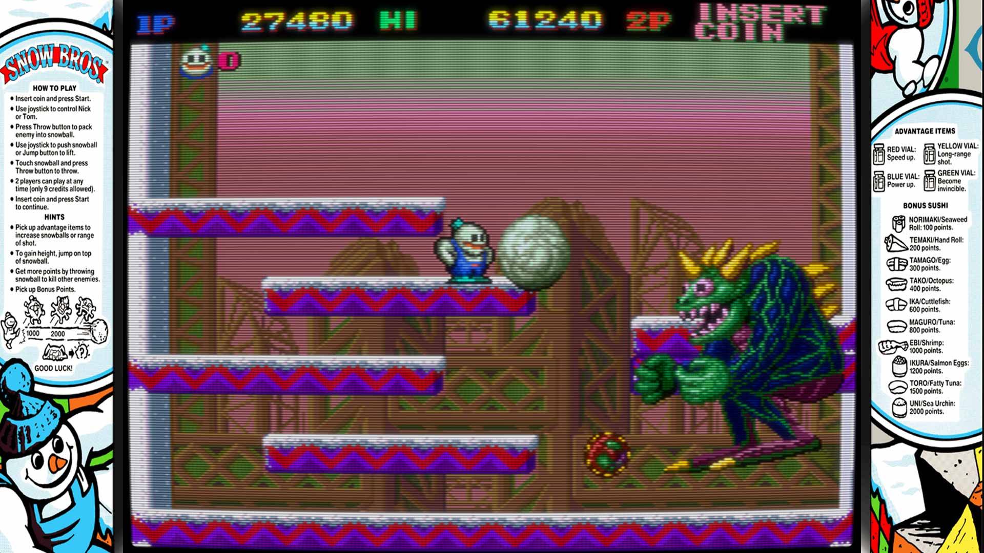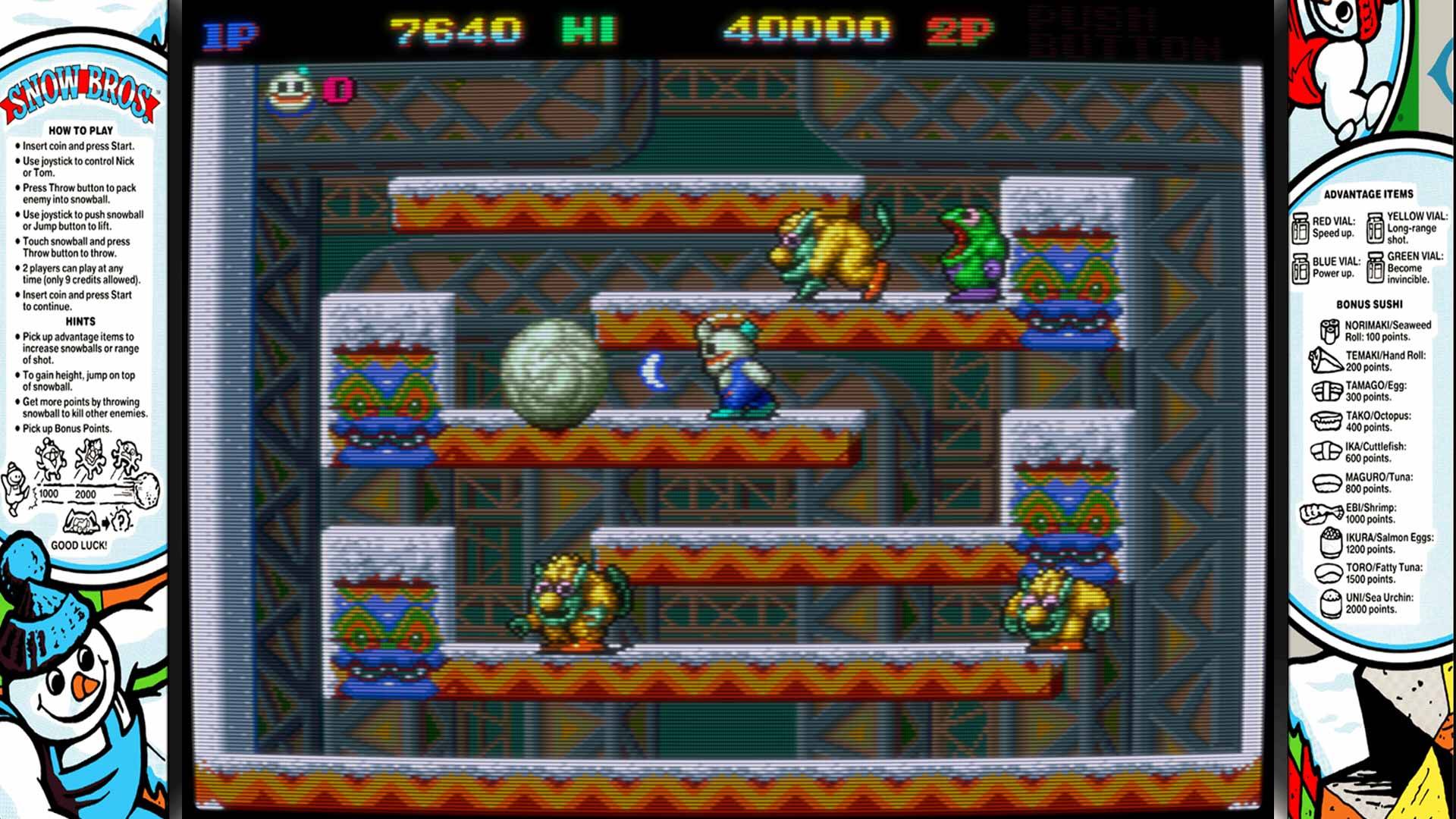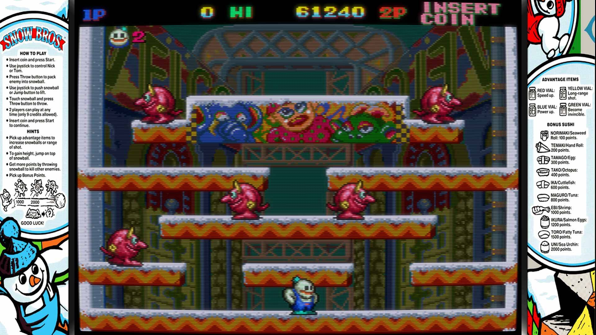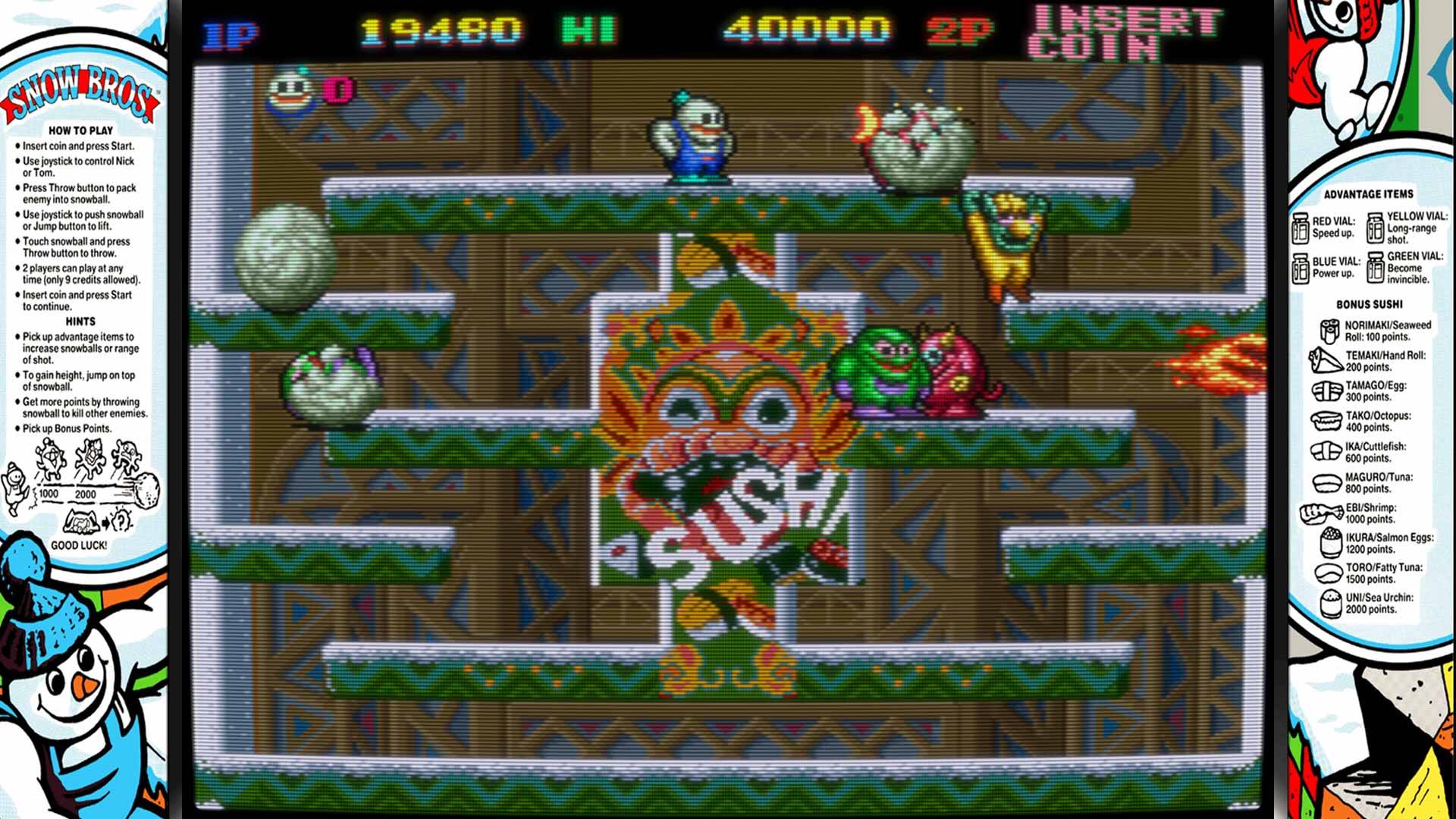 Dieses kurze Video zeigt das erste Level von Snow Bros. in der Arcade. Ich versuche in meinen Videos bewusst, immer nur das erste Level zu zeigen – ohne Spoiler – damit du einen Eindruck vom Spielgefühl sowie der Grafik und dem Sound bekommst, ohne dir den Spielspaß zu verderben.